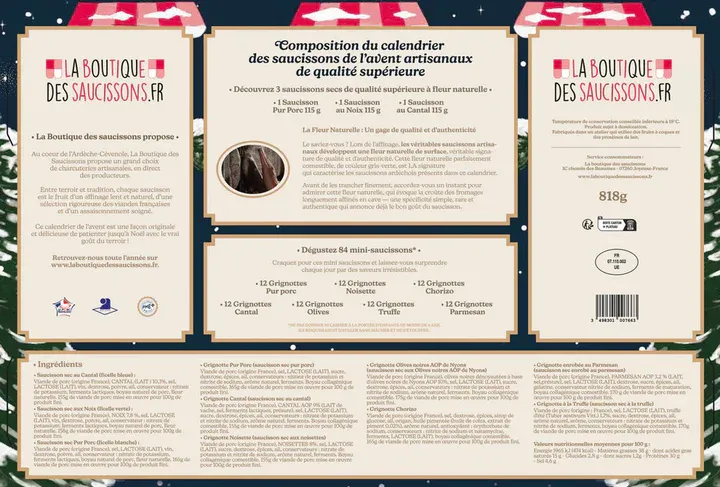 3 saucissons entiers + 84 mini (3 par case) pour un apéritif festif chaque jour de décembre.