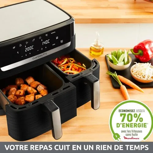 Le Moulinex Easy Fry Essential 8,3L est une friteuse à air innovante qui permet de préparer des repas sains et savoureux pour toute la famille. Profitez d’une cuisson rapide et uniforme grâce à ses 7 programmes automatiques et sa connectivité via application dédiée.